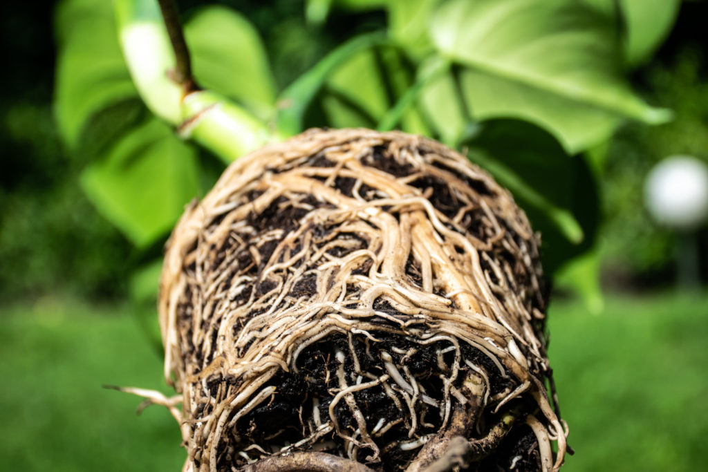 In het groeiseizoen kan deze plant snel groeien. Als je ziet dat jouw plant veel nieuwe bladeren aanmaakt kun je er vanuit gaan dat er ook nieuwe wortels bijkomen. Na verloop van tijd is de huidige pot te klein en is het tijd om te verpotten. Je merkt dit, onder andere, aan: